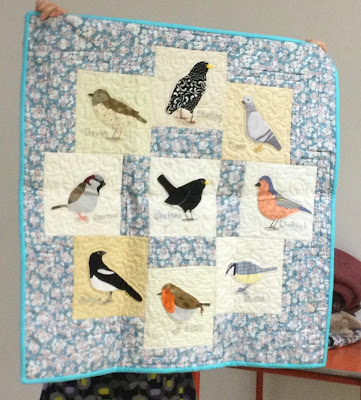 This quilt is for a new baby. All the birds are needleturned applique. Any baby would be happy to be sick on this!